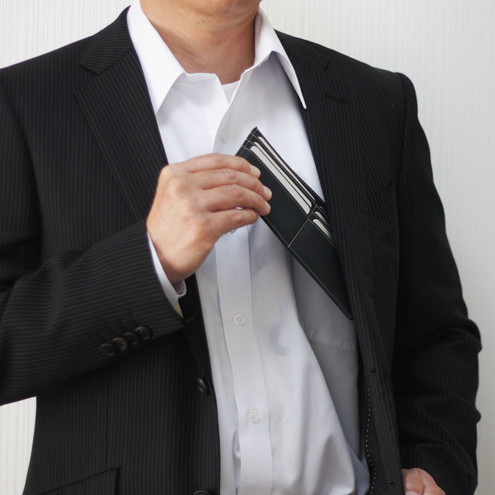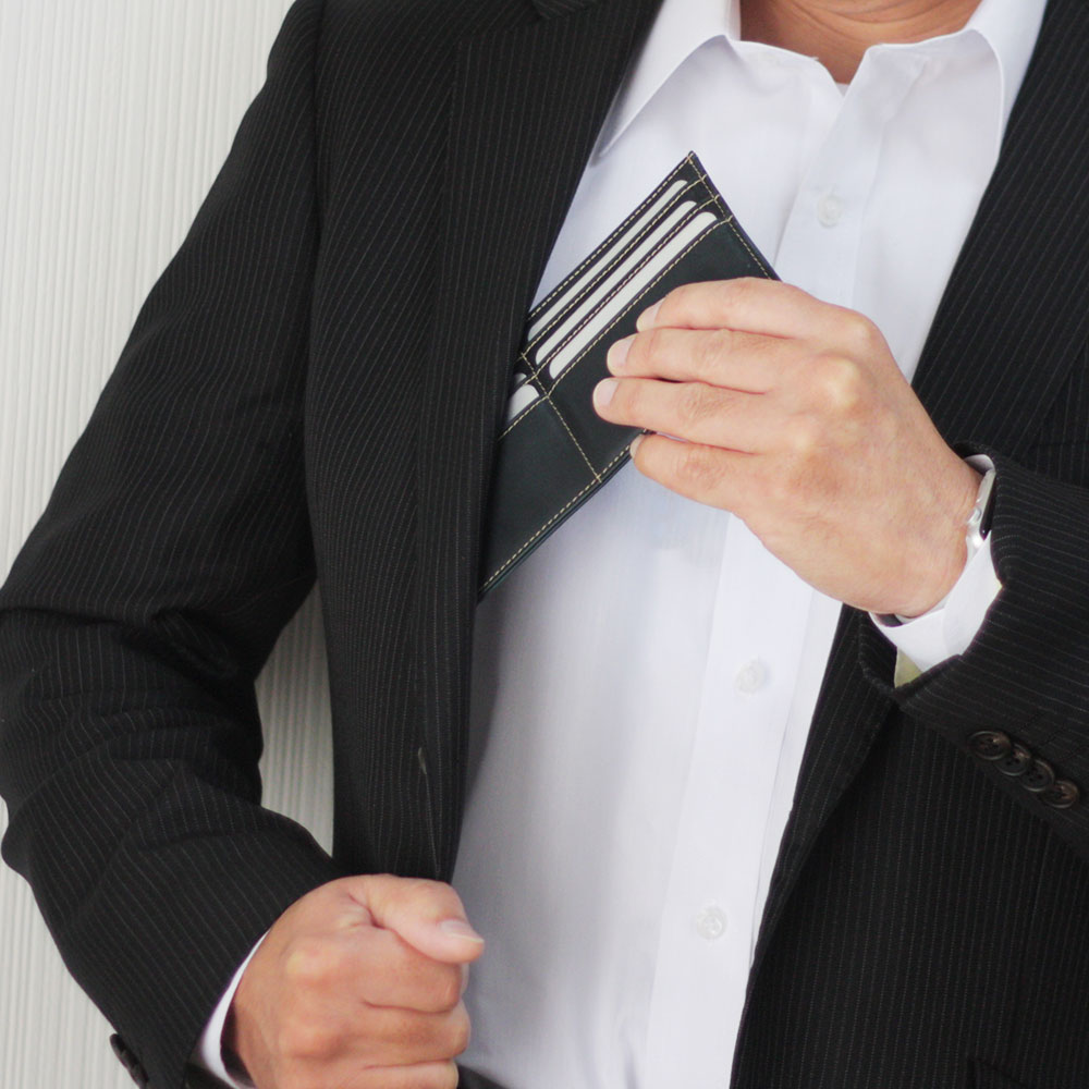 男性はスーツの胸元にしまってスマートに